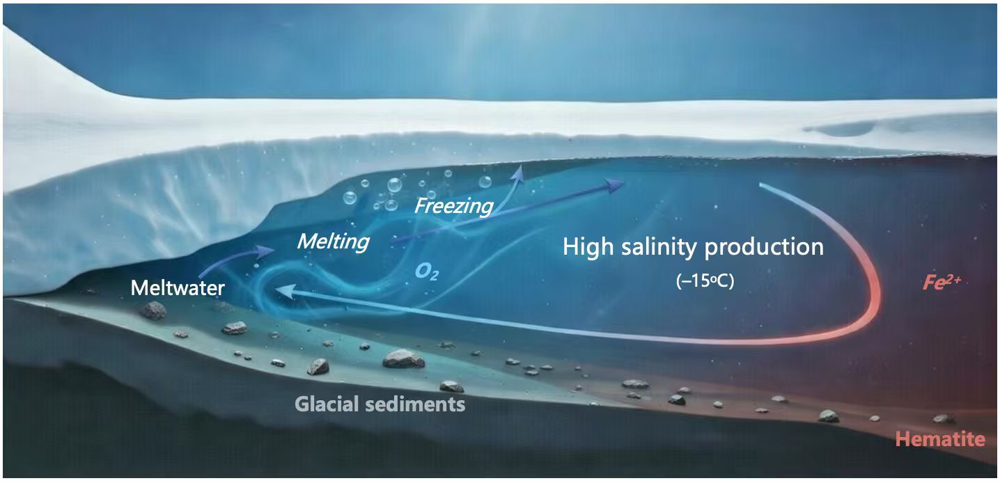 A Conceptual model of Cryogenian iron formation deposition and high-salinity brine generation during Snowball Earth conditions (Image courtesy of LU Kai's research group)